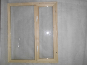 Имитация стеклопакета. Изготавливается из хвойных пород древесины. Двойное остекление. Фурнитура в комплекте.