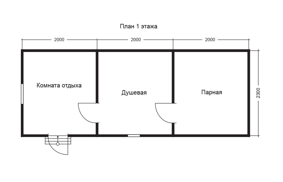 Окна — деревянные 1.0×1.0 м. с двойным остеклением, фурнитура в комплекте. Межкомнатные двери — филенчатые 0.8×2.0 м., петли универсальные (бабочки). Ручки и замки в комплект не входят. Окна и двери обналичиваются вагонкой хвойных пород класса «Б». Входная дверь — металлическая 0.8×2.0 м. Дверь в парную — клиновая.