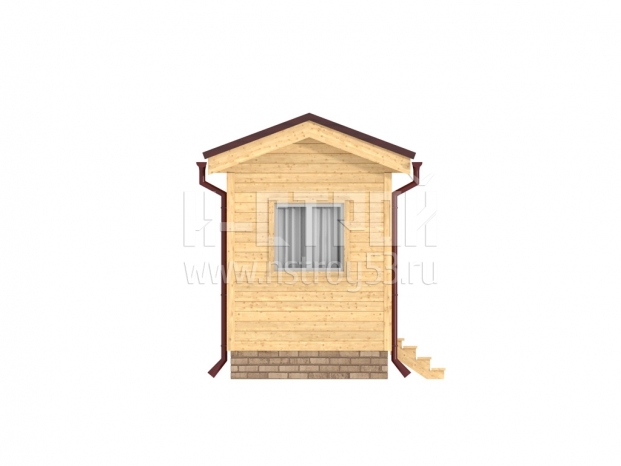 Профилированный брус 140×90 мм., или 140×140 мм., прямой с фасками или закругленный с внешней стороны в форме блок-хауса. Брус собирается на металлические нагеля (гвозди). Между брусом прокладывается джутовый утеплитель.
