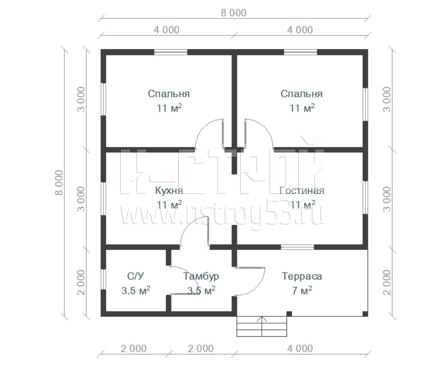 Каркасный дом 8х8 с террасой